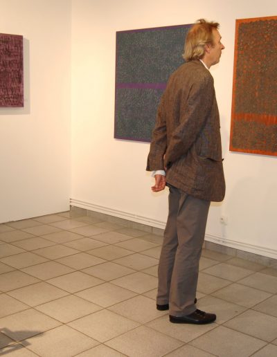 Hanna Zawa-Cywinska is a Polish artist. In 1967 she moved to the United States, where she studied at the Fashion Institute of Technology in New York and the New York State University in Purchase. Later on, she lived in Switzerland and since 2004 she lives and works in Warsaw. She often uses a mysterious chemical substance, that creates relief on the monochromatic surface of the painting. She draws her inspiration from the past and the way we remember – and forget – it.